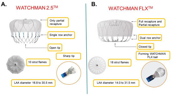 Profile comparison between WATCHMAN 2.5 (A) and WATCHMAN FLX (B).