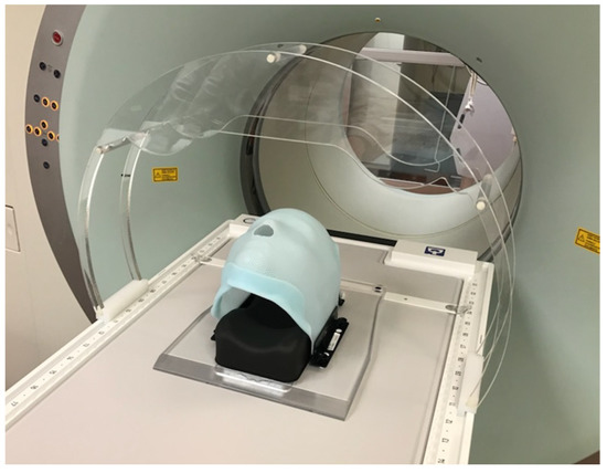 Custom acrylic baseplate for head-and-shoulder mask fixation and indexing.