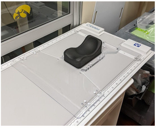 Prior to the first treatment, an initial reference treatment plan based on simulation imaging is created for each patient. Patient simulation consists of both CT (or CT/positron emission tomography (PET)) and MRI components with MRIs acquired on a 3T Siemens Magnetom Trio (Siemens, Munich, Germany) and CTs or CT/PET acquired with a Siemens Biograph 40 PET/CT scanner. MRIs are acquired using multiple sequences that aid in OAR and target delineation. The simulation MRI sequences can also be used to determine the scan protocol best suited for registration during daily imaging. For MRI simulation, T1 and T2 scans are acquired, with additional scans acquired based on treatment location, use of contrast, or per the attending physician’s request. During this imaging, the patient is observed for anxiety and comfort in the immobilization devices that may rarely contraindicate daily treatment on a closed-bore system. Due to patients not being simulated on the MR-linac, which provides more treatment time on the machine, clearance for the imaging coil bridge is also tested using an in-house-developed acrylic replica of the MR-linac anterior coil to ensure that there will be adequate clearance during treatment (Figure 3). As one of the early adopters of the 1.5T MR-Linac, our institution developed our own clearance tool for use during treatment simulation, but Elekta now provides a similar tool as part of the purchase.