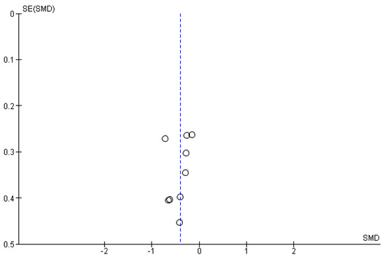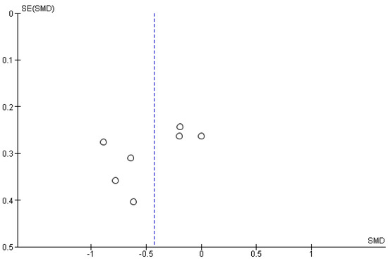 - Zwetsloot, P.P.; Van Der Naald, M.; Sena, E.S.; Howells, D.W.; IntHout, J.; De Groot, J.A.; Aj Chamuleau, S.; Macleod, M.R.; Wever, K.E. Standardized mean differences cause funnel plot distortion in publication bias assessments. eLife 2017, 6, e24260. [Google Scholar] [CrossRef]