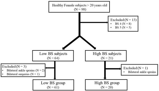 | Variables | Low-BS Group (n = 61) | High-BS Group (n = 20) | p Value |