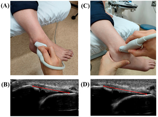 - Yokoe, T.; Tajima, T.; Kawagoe, S.; Yamaguchi, N.; Morita, Y.; Chosa, E. The Ratio of Stress to Nonstress Anterior Talofibular Ligament Length on Ultrasonography: Normative Values. Orthop. J. Sports Med. 2021, 9, 23259671211056305. [Google Scholar] [CrossRef] [PubMed]