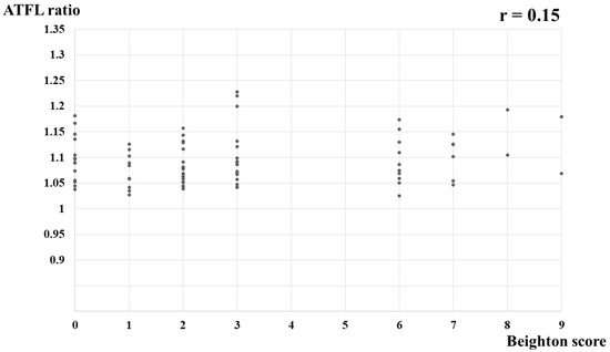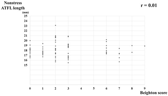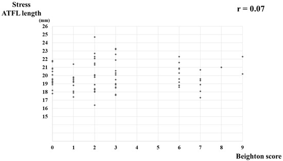 Chicago/Turabian StyleYokoe, Takuji, Takuya Tajima, Nami Yamaguchi, Yudai Morita, and Etsuo Chosa. 2022. "Association between the Beighton Score and Stress Ultrasonographic Findings of the Anterior Talofibular Ligament in Healthy Young Women: A Cross-Sectional Study" Journal of Clinical Medicine 11, no. 7: 1759. https://doi.org/10.3390/jcm11071759