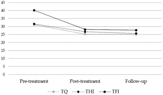 - Given the primarily audiological–cognitive focus of the intervention, treatment-related change may be most strongly reflected in TFI (vs. TQ or THI) scores;