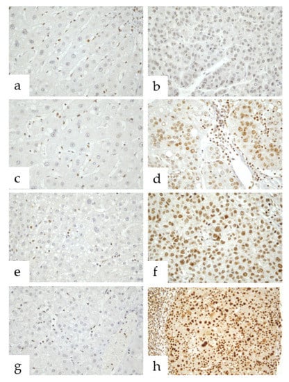 - Thorgeirsson, S.S.; Grisham, J.W. Molecular pathogenesis of human hepatocellular carcinoma. Nat. Genet. 2002, 31, 339–346. [Google Scholar] [CrossRef]