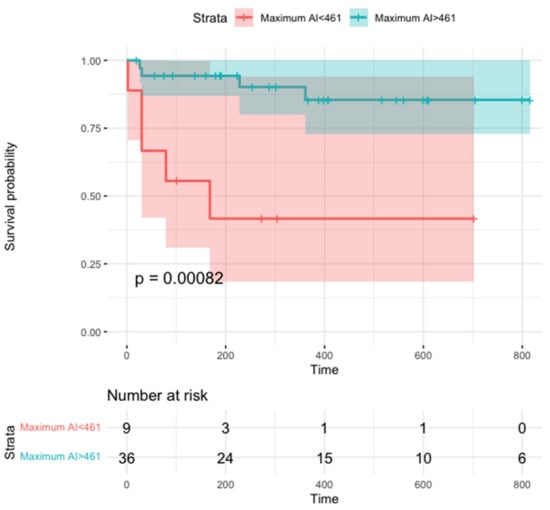 The Shapiro–Wilk’s test was used to check continuous variables for normality; non-normal variables were expressed as median (1st–3rd quartile), whereas categorical variables were reported as counts and percentages. The primary outcome was assessed in a time-to-event fashion, with the Kaplan–Meier method, and the role of AI as a predictor of focal AT recurrence was tested with univariable Cox proportional hazard regression, and results were summarized by reporting hazard ratios (HR) and 95% confidence intervals. Furthermore, differences in AI values between patients experiencing a primary outcome event and patients not experiencing a primary outcome event were analyzed with the Student’s t test or the Wilcoxon rank-sum test for normally and non-normally distributed variables, respectively. Discrimination ability of AI was measured with area under the receiver operating characteristic curve, and the optimal AI cutoff value was identified as that maximizing Youden’s index (i.e., sensitivity + specificity−1). An alpha level <0.05 was considered statistically significant, and the software RStudio (RStudio Inc., Boston, MA, USA) was used for statistical analysis.