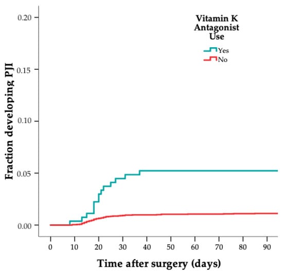 Chicago/Turabian StyleBruin, Maarten M., Ruud L. M. Deijkers, Michaël P. A. Bus, Erika P. M. van Elzakker, Roos Bazuin, Rob G. Nelissen, and Bart G. Pijls. 2022. "Inhaled Corticosteroids, Vitamin K Antagonists and Amlodipine Were Associated with an Increased Risk of Acute Periprosthetic Joint Infection in Patients with Total Hip Arthroplasty: A Retrospective Case–Cohort Study" Journal of Clinical Medicine 11, no. 7: 1842. https://doi.org/10.3390/jcm11071842