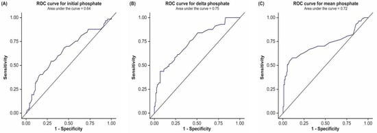 | Phosphate | AUC | 95% CI | Criterion (mg/dL) | Sensitivity | Specificity | PPV | NPV |