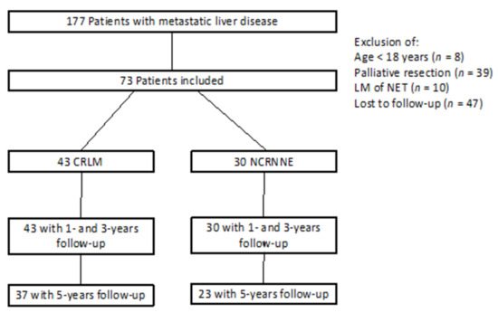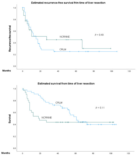 To date, the role of radical surgical treatment of NCRNNELM is a topic of ongoing debate. Currently, many patients with NCRNNELM are treated as palliative despite modern advances in liver surgery and improvement of multimodal therapy concepts. Our study analyzed the 5-year survival of patients after liver resection for NCRNNELM and compared them to a cohort of surgically treated patients with CRLM. In addition, we focused on prognostic predictors in NCRNNE liver metastasis patients.