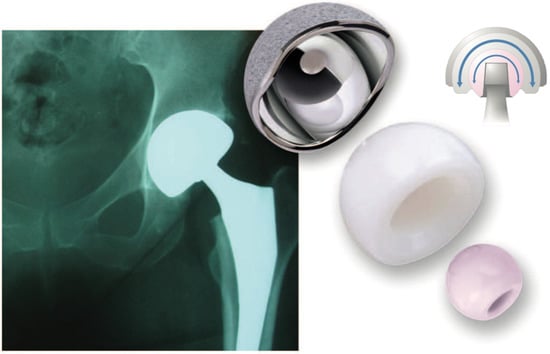- Hu, D.; Tie, K.; Yang, X.; Tan, Y.; Alaidaros, M.; Chen, L. Comparison of ceramic-on-ceramic to metal-on-polyethylene bearing surfac es in total hip arthroplasty: A meta-analysis of randomized controlled trials. J. Orthop. Surg. Res. 2015, 10, 22. [Google Scholar] [CrossRef] [PubMed]
