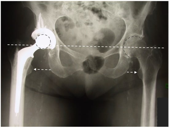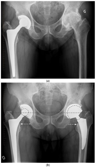 - Desai, A.S.; Dramis, A.; Board, T.N. Leg length discrepancy after total hip arthroplasty: A review of literature. Curr. Rev. Musculoskelet. Med. 2013, 6, 336–341. [Google Scholar] [CrossRef] [PubMed]