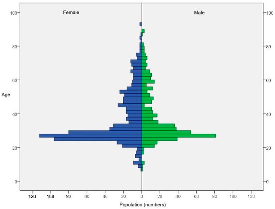 The gender distribution of age class was between 20 and 30 years and the majority of participants were female.