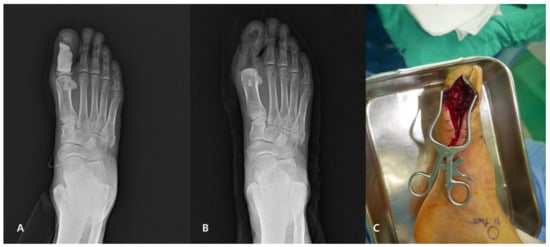 Woo, I.; Park, J.; Seok, H.; Kim, T.-g.; Moon, J.S.; Chung, S.M.; Park, C.H. The Fate of Antibiotic Impregnated Cement Space in Treatment for Forefoot Osteomyelitis. J. Clin. Med. 2022, 11, 1976. https://doi.org/10.3390/jcm11071976