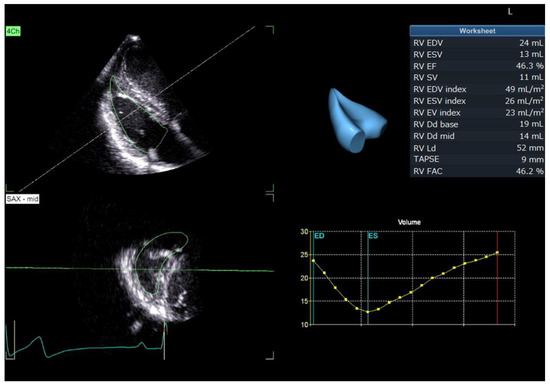 - Ahmad, A.; Li, H.; Wan, X.; Zhong, Y.; Zhang, Y.; Liu, J.; Gao, Y.; Qian, M.; Lin, Y.; Yi, L.; et al. Feasibility and Accuracy of a Fully Automated Right Ventricular Quantification Software With Three-Dimensional Echocardiography: Comparison With Cardiac Magnetic Resonance. Front. Cardiovasc. Med. 2021, 8, 732893. [Google Scholar] [CrossRef] [PubMed]