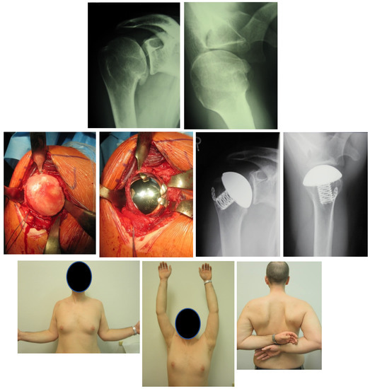 - Matsen, F.; Rockwood, C. The Shoulder Matsen FA, Rockwood CA Wirth MA. Glenohumeral Arthritis and Its Management. In The Shoulder, 2nd ed.; WB Saunders: Philadelphia, PA, USA, 1998; pp. 870–872. [Google Scholar]