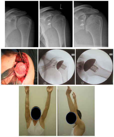 - Auffarth, A.; Schauer, J.; Matis, N.; Kofler, B.; Hitzl, W.; Resch, H. The J-Bone Graft for Anatomical Glenoid Reconstruction in Recurrent Posttraumatic Anterior Shoulder Dislocation. Am. J. Sports Med. 2008, 36, 638–647. [Google Scholar] [CrossRef] [PubMed]