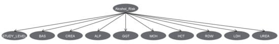 Other studies combined biological markers with a questionnaire and clinical parameters for improving the recognition of heavy drinkers [48]. It is similar to our Bayesian network in that one of the selected variables for the best prediction is “educational level,” clinical information that is easy to obtain in a patient’s interview.