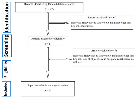 - Munn, Z.; Peters, M.D.J.; Stern, C.; Tufanaru, C.; McArthur, A.; Aromataris, E. Systematic review or scoping review? Guidance for authors when choosing between a systematic or scoping review approach. BMC Med. Res. Methodol. 2018, 18, 143. [Google Scholar] [CrossRef] [PubMed]
