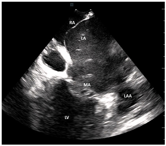- Manning, W.J.; Weintraub, R.M.; Waksmonski, C.A.; Haering, J.M.; Rooney, P.S.; Maslow, A.D.; Johnson, R.G.; Douglas, P.S. Accuracy of transesophageal echocardiography for identifying left atrial thrombi. A prospective, intraoperative study. Ann. Intern. Med. 1995, 123, 817–822. [Google Scholar] [CrossRef] [PubMed]