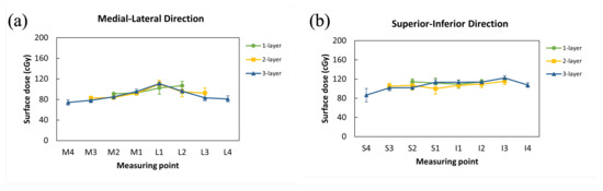 2.4. Measuring Points of Surface Dose Measurement for Different Breast Sizes Using Phantom Accessories