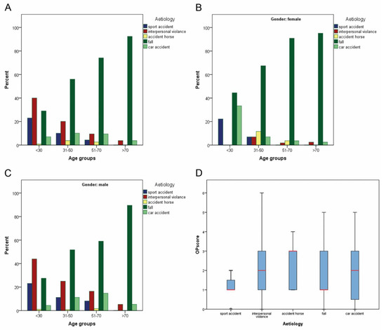 | Gender | Female | Aetiology | Sports-related accident | 2 | 22.2 | 3 | 7.0 | 0 | 0.0 | 0 | 0.0 | <0.001 |