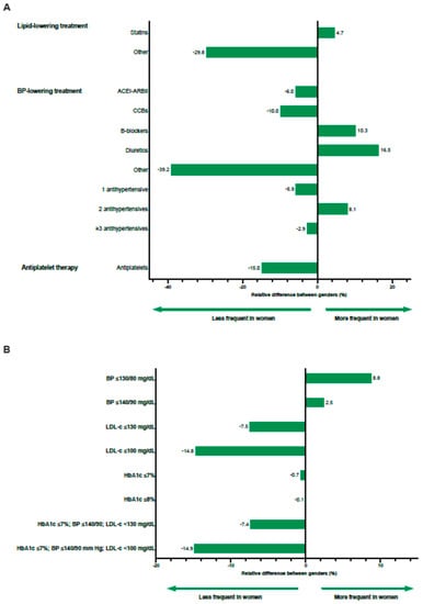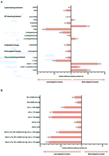- de Jong, M.; Vos, R.C.; de Ritter, R.; van der Kallen, C.J.; Sep, S.J.; Woodward, M.; Stehouwer, C.D.A.; Bots, M.L.; Peters, S.A. Sex Differences in Cardiovascular Risk Management for People with Diabetes in Primary Care: A Cross-Sectional Study. BJGP Open 2019, 3, bjgpopen19X101645. [Google Scholar] [CrossRef]