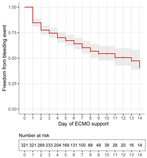 - Aubron, C.; DePuydt, J.; Belon, F.; Bailey, M.; Schmidt, M.; Sheldrake, J.; Murphy, D.; Scheinkestel, C.; Cooper, D.J.; Capellier, G.; et al. Predictive factors of bleeding events in adults undergoing extracorporeal membrane oxygenation. Ann. Intensive Care 2016, 6, 97. [Google Scholar] [CrossRef] [PubMed] [Green Version]