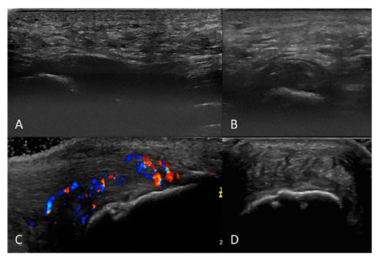 - Bruyn, G.A.; Iagnocco, A.; Naredo, E.; Balint, P.V.; Gutierrez, M.; Hammer, H.B.; Collado, P.; Filippou, G.; Schmidt, W.A.; Jousse-Joulin, S.; et al. OMERACT Definitions for Ultrasonographic Pathologies and Elementary Lesions of Rheumatic Disorders 15 Years on. J. Rheumatol. 2019, 46, 1388–1393. [Google Scholar] [CrossRef] [PubMed]