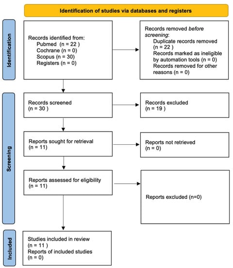 The electronic search, in the PubMed and Cochrane databases, yielded 22 articles. Out of the 22 articles, only 11 fulfilled the inclusion criteria.
