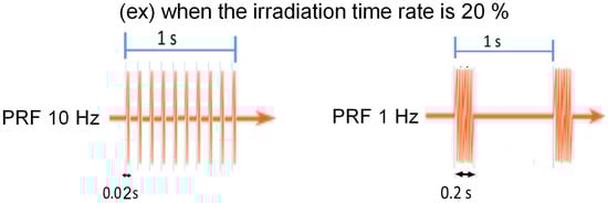 Ultrasound and pulse repetition frequency (PRF). PRF is the number of pulses of output per second in US waves. When the irradiation time rate is the same, the PRF is lower, and the longer the pulse per time.