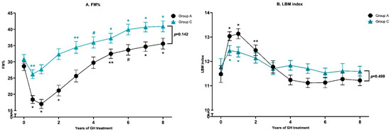 3.3. Results of 8 Years of GH Treatment in Subgroup A versus C