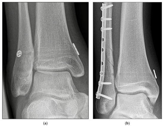 - Jeong, B.O.; Baek, J.H.; Song, W.J. Ankle Arthritis Combined With Chronic Instability of the Syndesmosis After Ankle Fracture With Syndesmotic Injury: A Case Report. J. Foot Ankle Surg. 2018, 57, 1000–1004. [Google Scholar] [CrossRef]