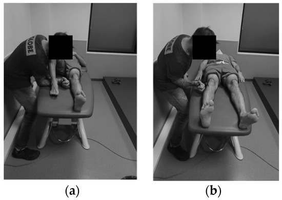 (a) Adductor hip strength assessment; (b) abductor hip strength assessment.