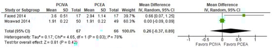 | Moawad, 2014 [17] | Egypt | RCT | Pain (NPRS, 0–10), rescue analgesia use, sedation, and patient satisfaction. Complications (PONV, shivering, pruritus, or pulmonary problems) | 20-60 PCEA: 44.45 (10.56)PCIA: 45.20 (10.61) | 99 (49/50) | PCEA: T10-12 PCIA: IV | - | Abdominal surgery | Yes | I, II | PCEA: bupivacaine 0.125%, fentanyl | All: Rescue 0.5 μg/kg IV fentanyl PCEA: fentanyl 5 μg/mL, bupivacaine 0.125% (1.25 mg/mL), bolus PCIA: fentanyl 20 μg/mL, bolus | PCEA demonstrated superior analgesia, less sedation, and higher patient satisfaction. |