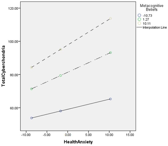 Graphical presentation of moderating role of metacognitive beliefs between health anxiety and cyberchondria.