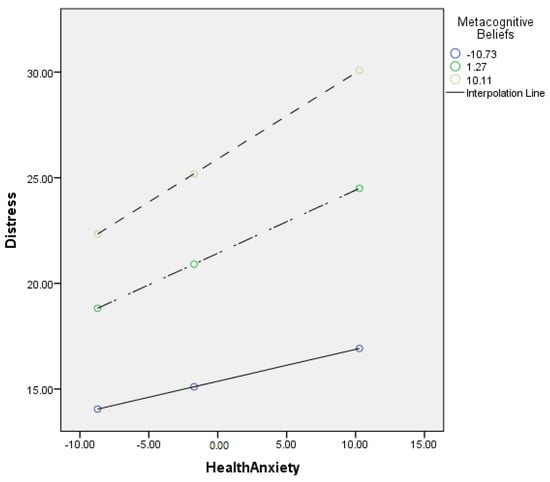 Graphical presentation of the moderating role of metacognitive beliefs between health anxiety and distress.