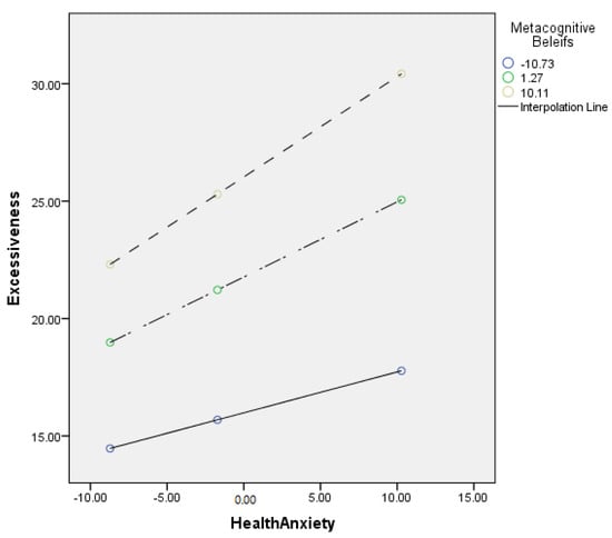 Graphical presentation of moderating role of metacognitive beliefs between health anxiety and excessiveness.