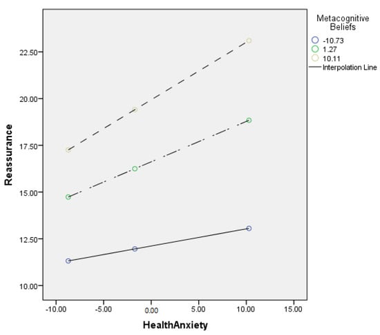 Graphical presentation of moderating role of metacognitive beliefs between health anxiety and reassurance.