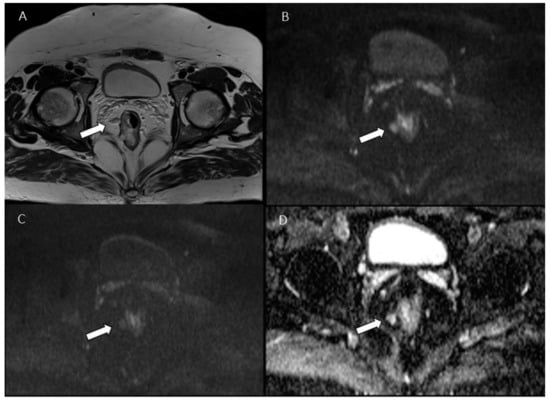 LNs are themselves characterized by a high cellular density of the lymphoid tissue, which exhibits a typical restriction pattern in DWI and therefore making them more easily detectable on DWI than T2W images. It has been demonstrated that the evaluation of DWI images improves the detection of pelvic LN by 10–83% when compared to conventional morphological MRI images alone [76,77,78,79].