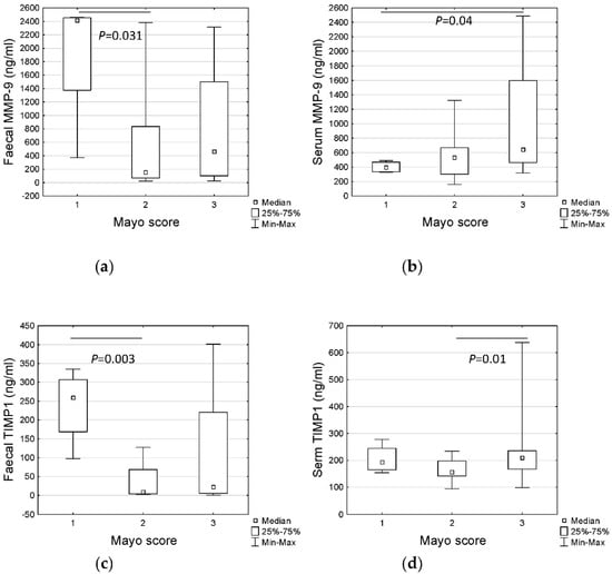 - Wang, Y.D.; Tan, X.Y.; Zhang, K. Correlation of plasma MMP-1 and TIMP-1 levels and the colonic mucosa expressions in patients with ulcerative colitis. Mediat. Inflamm. 2009, 2009, 275072. [Google Scholar] [CrossRef][Green Version]
