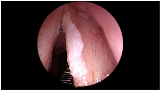 An examination that can provide additional information about the lesion is laryngeal videostroboscopy. According to Rzepakowska et al., non-invasive leukoplakia (parakeratosis, low-grade dysplasia, etc.) tends to preserve the mucosal wave of the vocal cord [24]. On the other hand, the mucosal wave tends to diminish in the case of an invasive form of leukoplakia (high-grade dysplasia, invasive carcinoma, etc.) [24]. As stated by El-Demerdash, the overall accuracy of laryngeal videostroboscopy versus histology was 95% [25]. Those results were further confirmed by studies by other authors [25,26,27].