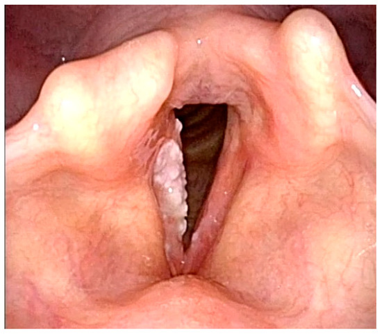 - Mirza, N.; Kasper Schwartz, S.; Antin-Ozerkis, D. Laryngeal Findings in Users of Combination Corticosteroid and Bronchodilator Therapy. Laryngoscope 2004, 114, 1566–1569. [Google Scholar] [CrossRef]
