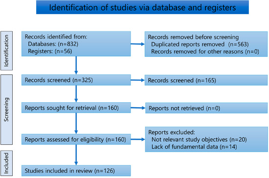 - Page, M.J.; McKenzie, J.E.; Bossuyt, P.M.; Boutron, I.; Hoffmann, T.C.; Mulrow, C.D.; Shamseer, L.; Tetzlaff, J.M.; Akl, E.A.; Brennan, S.E.; et al. The PRISMA 2020 statement: An updated guideline for reporting systematic reviews. BMJ 2021, 372, n71. [Google Scholar] [CrossRef] [PubMed]