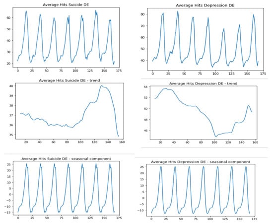 Hits “suicide” and “depression” for Germany–trend-seasonal decomposition.