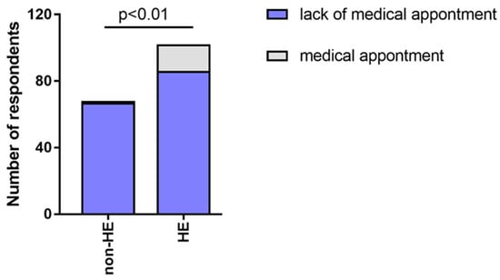 The frequency of medical appointment during pandemic in both groups (HE-study group and non-HE).