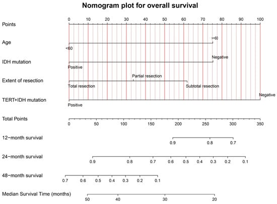 - Tunthanathip, T.; Ratanalert, S.; Sae-Heng, S.; Oearsakul, T.; Sakarunchai, I.; Kaewborisutsakul, A.; Chotsampancharoen, T.; Intusoma, U.; Kitkhuandee, A.; Vaniyapong, T. Prognostic factors and clinical nomogram predicting survival in high-grade glioma. J. Cancer Res. Ther. 2021, 17, 1052–1058. [Google Scholar] [CrossRef] [PubMed]