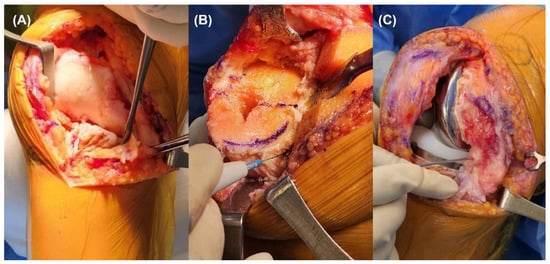 - Herschmiller, T.; Grosso, M.J.; Cunn, G.J.; Murtaugh, T.S.; Gardner, T.R.; Geller, J.A. Step-wise medial collateral ligament needle puncturing in extension leads to a safe and predictable reduction in medial compartment pressure during TKA. Knee Surg. Sports Traumatol. Arthrosc. 2018, 26, 1759–1766. [Google Scholar] [CrossRef] [PubMed]