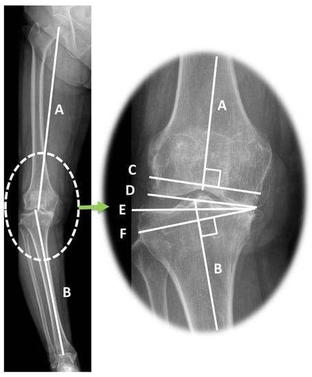 - Singh, D.; Patel, K.C.; Singh, R.D. Achieving coronal plane alignment in total knee arthroplasty through modified preoperative planning based on long-leg radiographs: A prospective study. J. Exp. Orthop. 2021, 8, 100. [Google Scholar] [CrossRef] [PubMed]