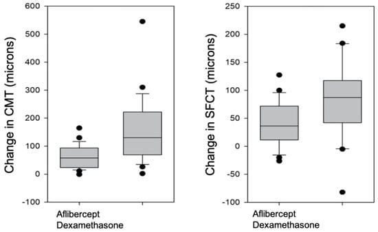 | CMT Aflibercept | SFCT AFLIBERCEPT | CMT Dexamethasone Implant | SFCT Dexamethasone Implant | CMT Reduction Aflibercept versus Dexamethasone | |