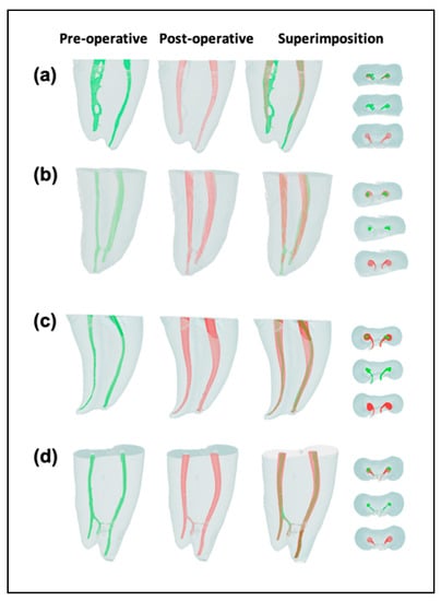 - Nehme, W.; Araji, S.; Michetti, J.; Zogheib, C.; Naaman, A.; Khalil, I.; Pages, R.; Basarab, A.; Mallet, J.P.; Diemer, F. Assessment of root canal transportation of 2Shape and ProTaper gold in mandibular molar mesial canals: A micro-computed tomographic study. Microsc. Res. Tech. 2021, 84, 746–752. [Google Scholar] [CrossRef] [PubMed]